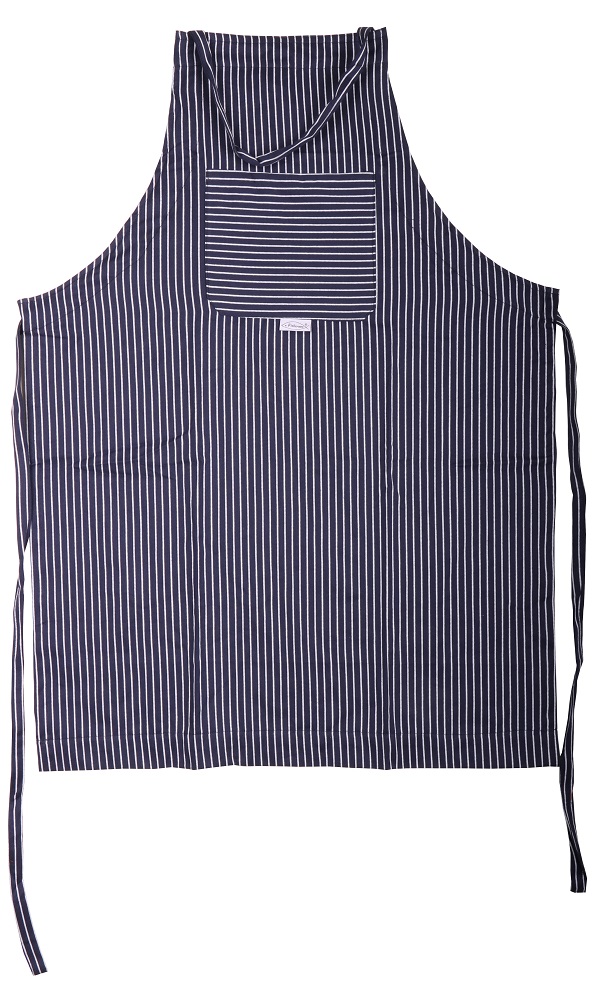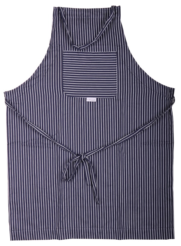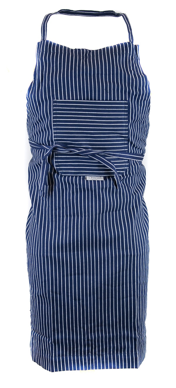 Schürze aus Fischerstoff für große Köchinnen und Köche, größenverstellbar, daher für jede Größe passend, breit gestreift.