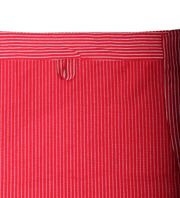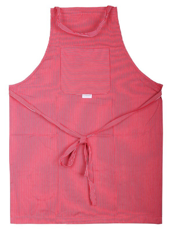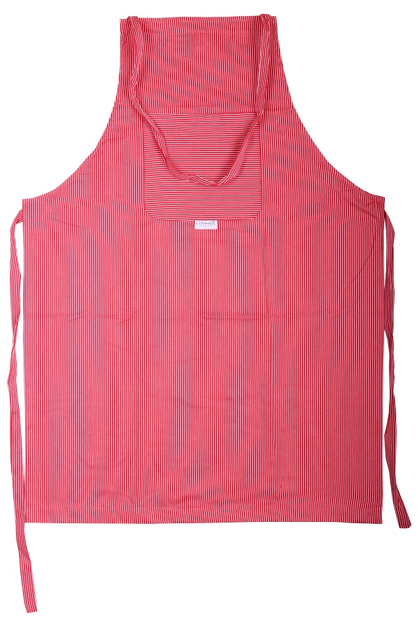 Schürze aus Fischerstoff für große Köchinnen und Köche, größenverstellbar, daher für jede Größe passend, rot/weiß, schmal gestreift.