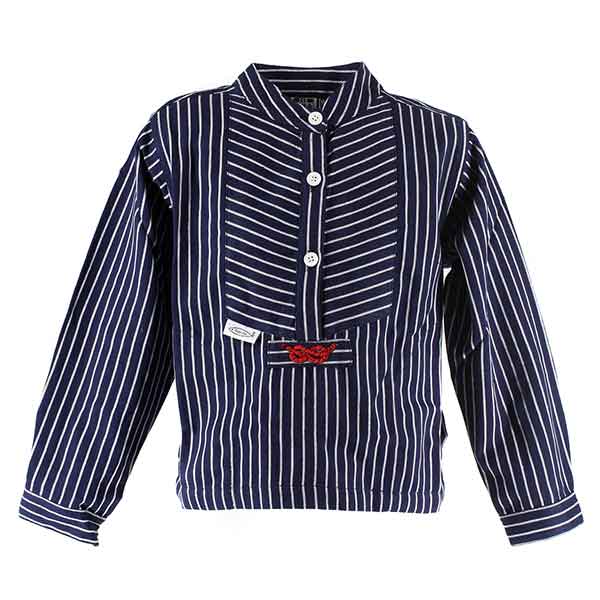 Fischerhemd Finkenwerder, breit gestreift, Stickerei "Knoten"
